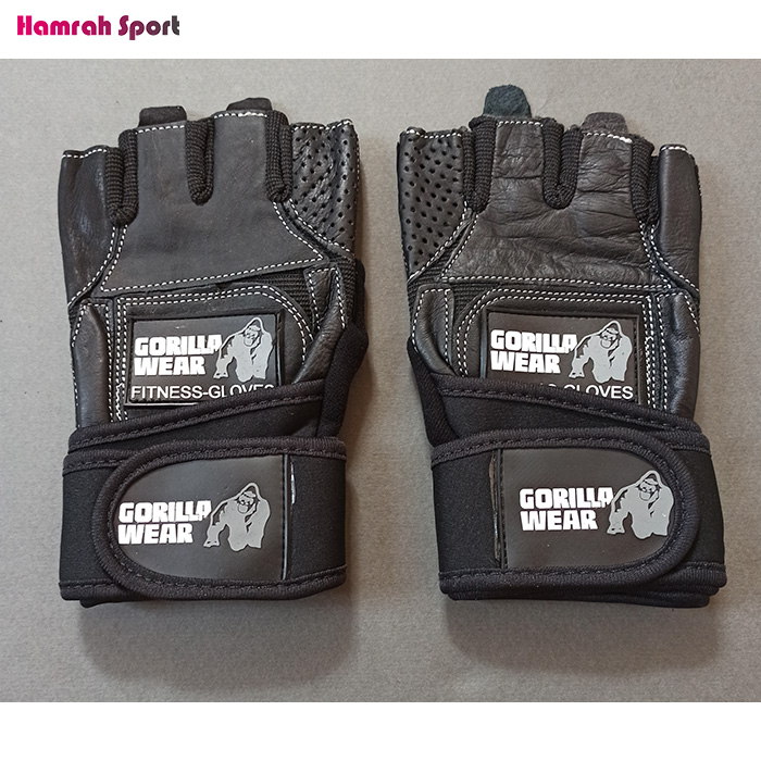 دستکش بدنسازی حرفه ای چرم مچ بنددار گوریل مدل GLW/2025 اورجینال