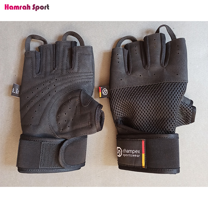 دستکش بدنسازی چمپکس چرم CHAMPEX مدل مچ بند دار