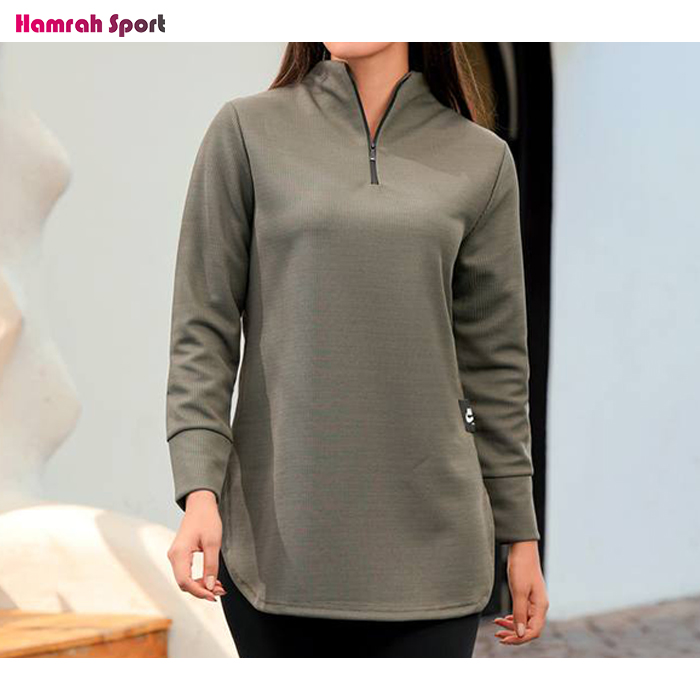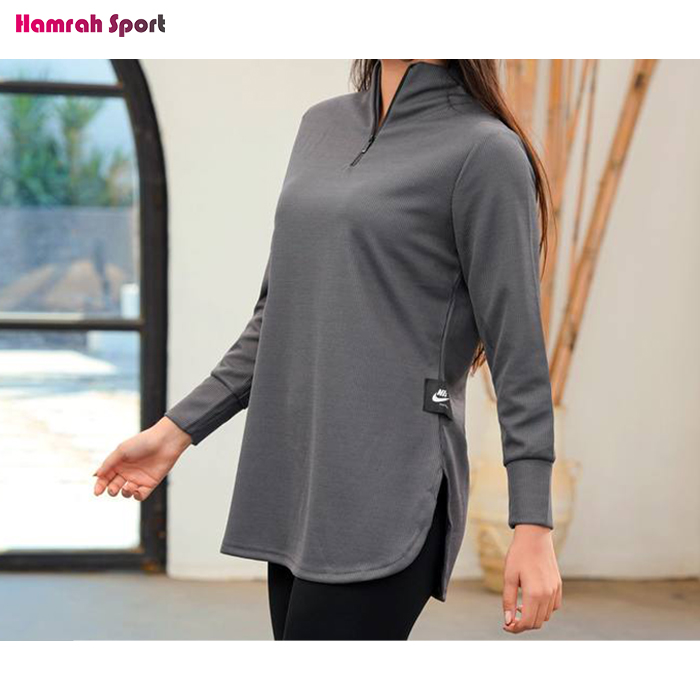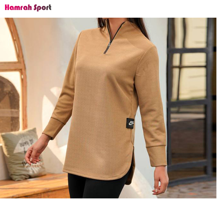 مانتو ورزشی زنانه نیم زیپ نایک NIKE مدل هلالی بیسکوئیتی اعلا